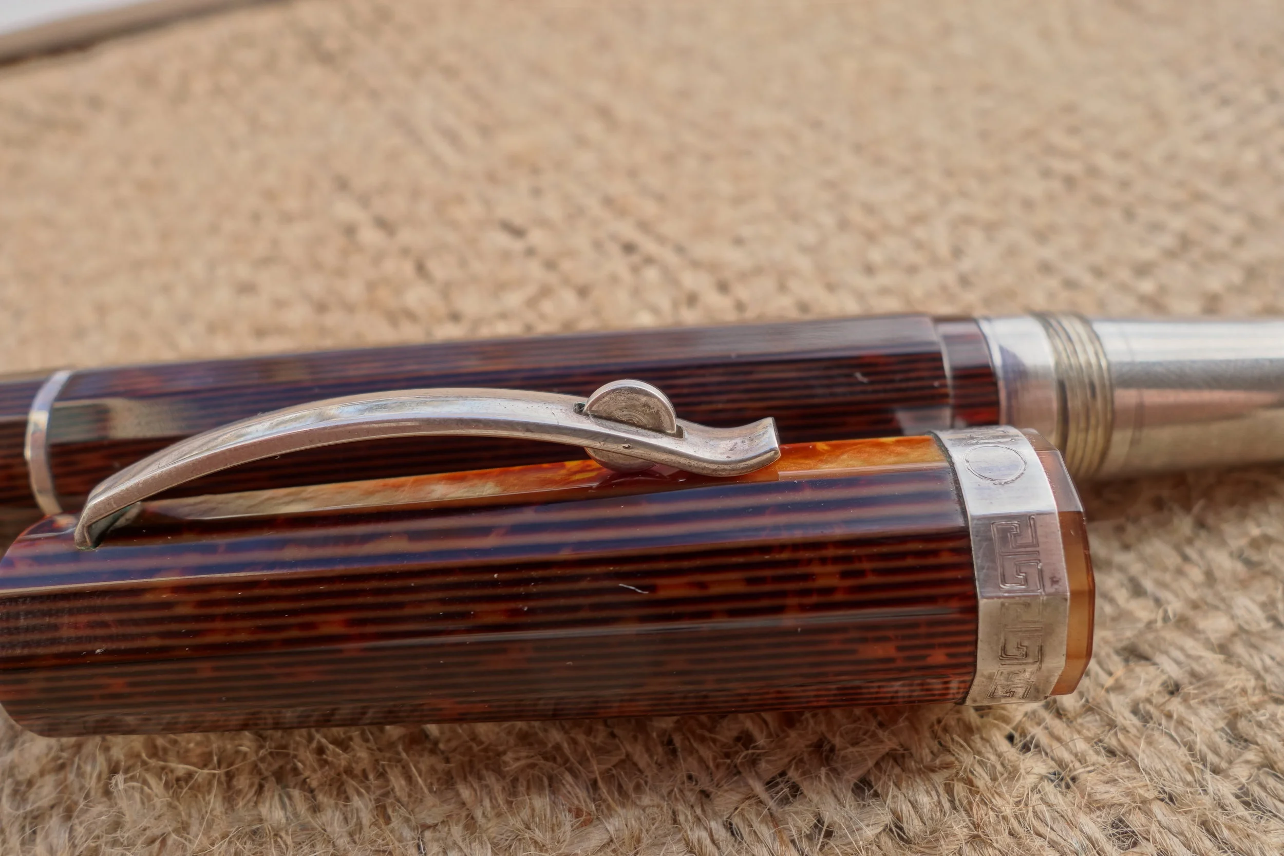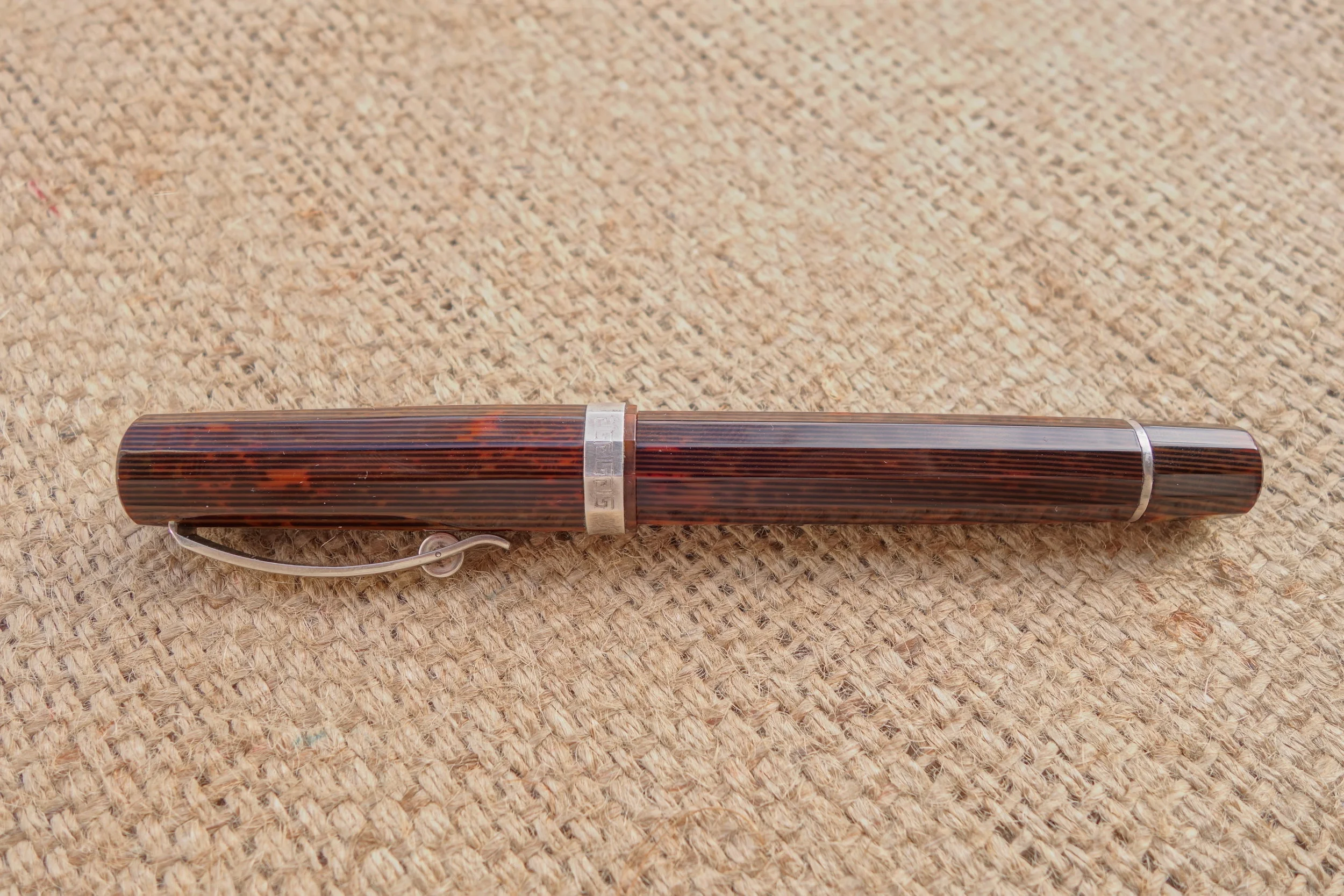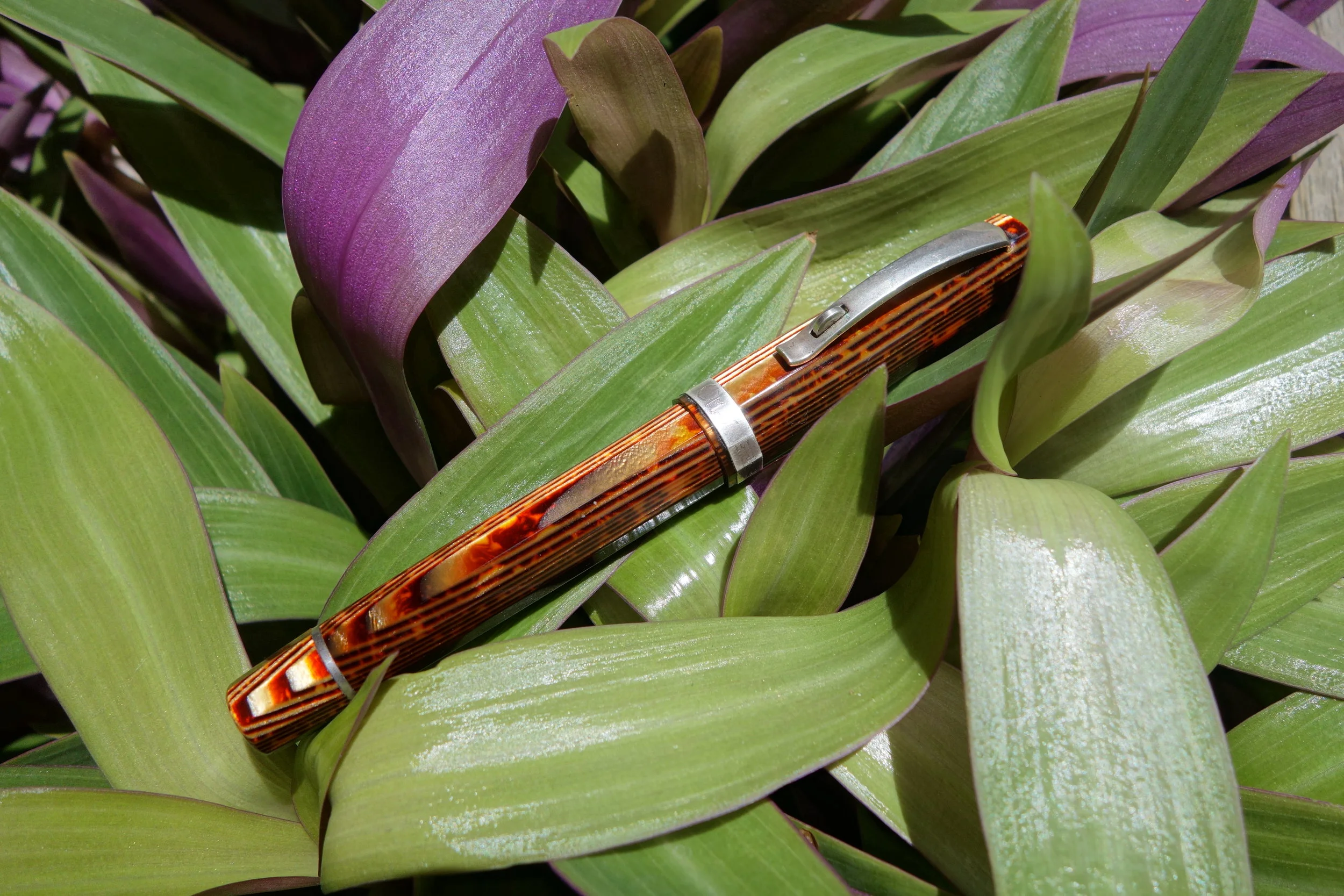 Due to how the Arco celluloid is cut and the type of layered celluloid it is there are two beautiful sides and two less interesting sides. When looking at the pen from the side (clip pointing up or down) the pen is a much flatter and less distinct brown colour here compared to the shiny Tiger's Eye-like look to it when viewed from above (with the clip pointing up) or bellow.